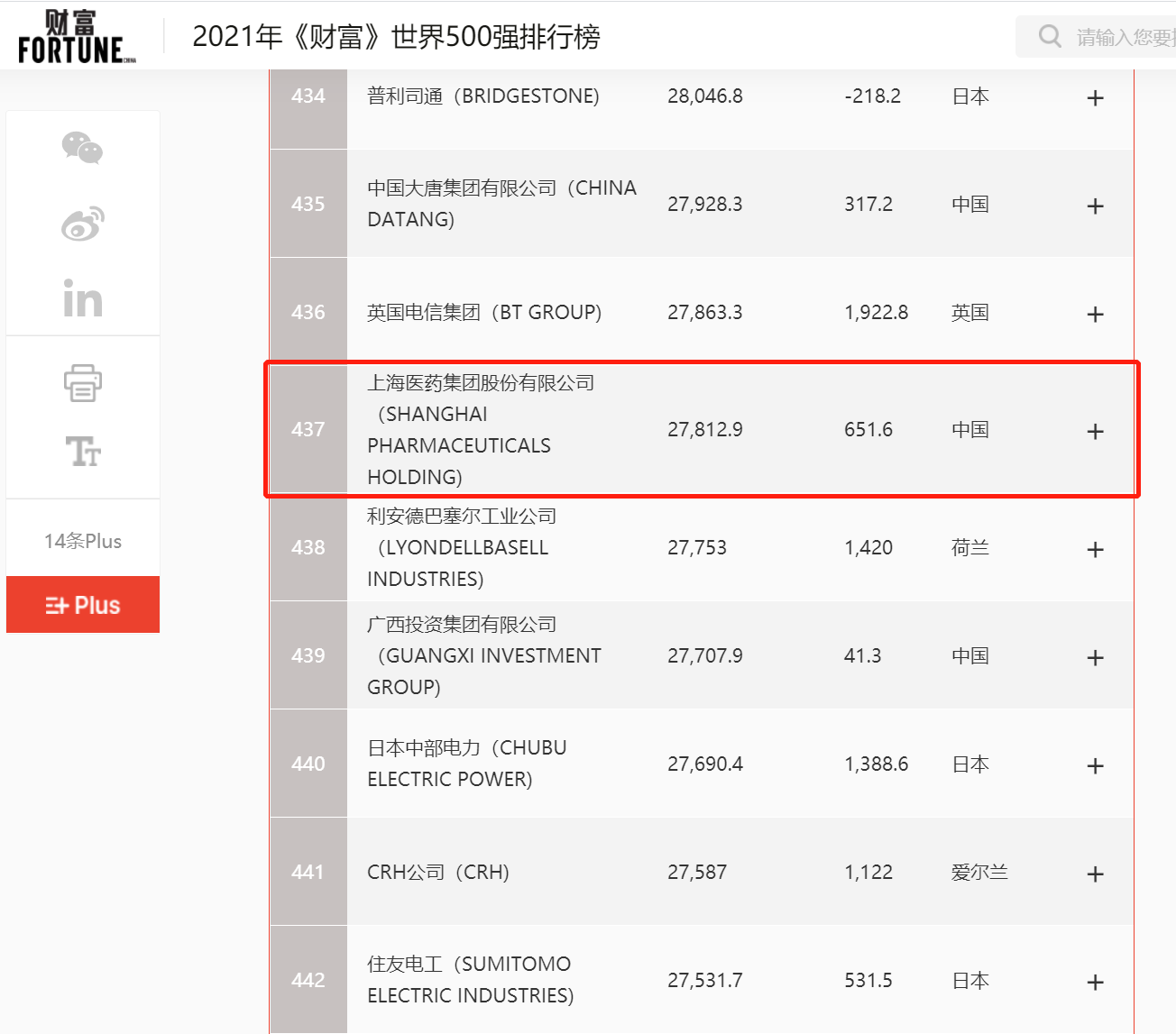 2021年8月2日,《財(cái)富》雜志正式發(fā)布“2021年《財(cái)富》世界500強(qiáng)排行榜單”,上海醫(yī)藥集團(tuán)股份有限公司(601607.SH,02607.HK,以下簡稱“上海醫(yī)藥”)再次上榜,位列第437位。這也是繼2020年首次入選后,上海醫(yī)藥再度憑借自身實(shí)力強(qiáng)勢登榜,排名躍升36位。